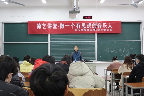 通过本次讲座,让同学们知道了今天的幸福生活来之不易,加深了同学们对学习和生活的热情,争做一个有思想的音乐人。
