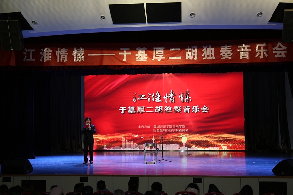 12月31日晚,由伟德betvlctor体育官网与民盟伟德betvlctor体育官网基层委员会联合主办的“江淮情愫”于基厚二胡独奏音乐会在公司音乐厅上演,周金刚主持。盐城市人大、市政协部分领导,市文艺界、教育界人士及盐城师院伟德betvlctor体育官网师生观看了音乐会。