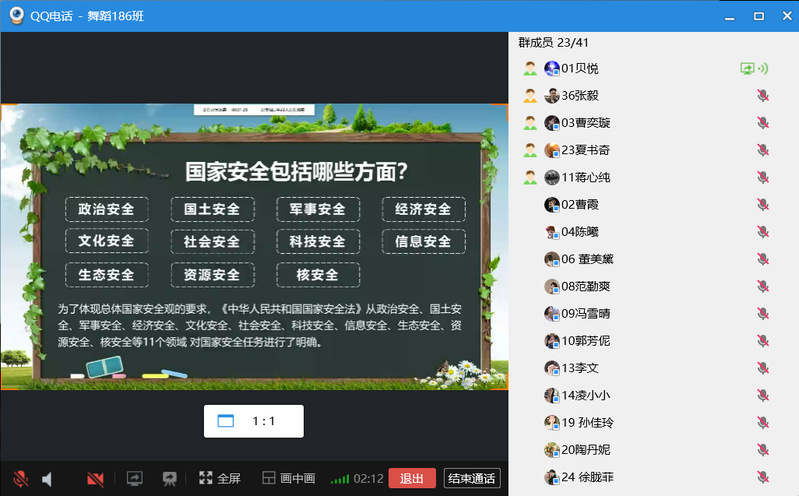 活动中,各班团支书介绍国家安全教育日的背景以及内容,通过图文展示、播放视频等形式,对《国家安全法》《反间谍法》《反恐怖主义法》等法律进行解读,让同学们了解安全法、反间谍法、反恐怖主义法的具体内容,同时,引导同学们如何正确看待法律、如何对待国家安全教育日。
