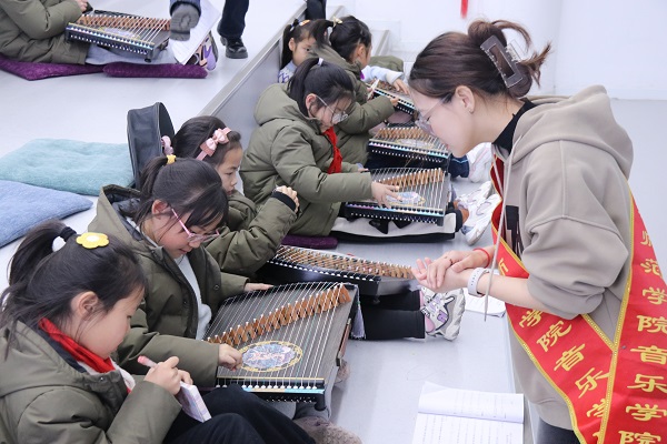 223日,伟德betvlctor体育官网志愿者们走进盐城外国语公司开展美育类社团指导活动,7位志愿者根据各自专业分成了三个小组,分别协助任课老师开展古筝、钢琴、舞蹈等课程的教学。