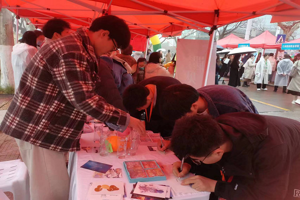 公司心理健康教育中心在“至善路”心理大集承办主题为“你的情绪发泄地”系列活动,运用表达性艺术心理疗法和音乐疗法等方式,通过“律动青春,户外K歌”、“你的杯子你定义”、“心传递,信遥寄”等活动吸引了大量“粉丝”。在毛毛细雨中,由伟德betvlctor体育官网2020级张洪祥带来的《心墙》《爱笑的眼睛》等舒缓的歌曲让同学们享受DIY手工杯子的乐趣;同学们在明信片上写下自己的愿望,留下给陌生人的祝福,通过书写的方式释放压力,传递温暖与关怀。毛杨熠杰演唱的《太阳》歌曲“点燃”了全场气氛,吸引了众多兄弟院校的老师、同学们一起加入“户外KTV”,江苏师范大学工会主席潘永亮也到现场为老师、同学们加油助威,现场热闹非凡!